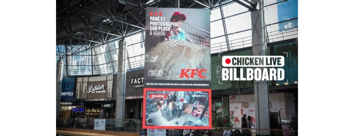 🎥🍗 Préparés à la main, panés sur place, photographiés en temps réel : les tenders KFC s’affichent en direct sur un écran géant à La Défense. Une campagne signée Havas Paris, qui mêle activation terrain, live content et transparence produit.