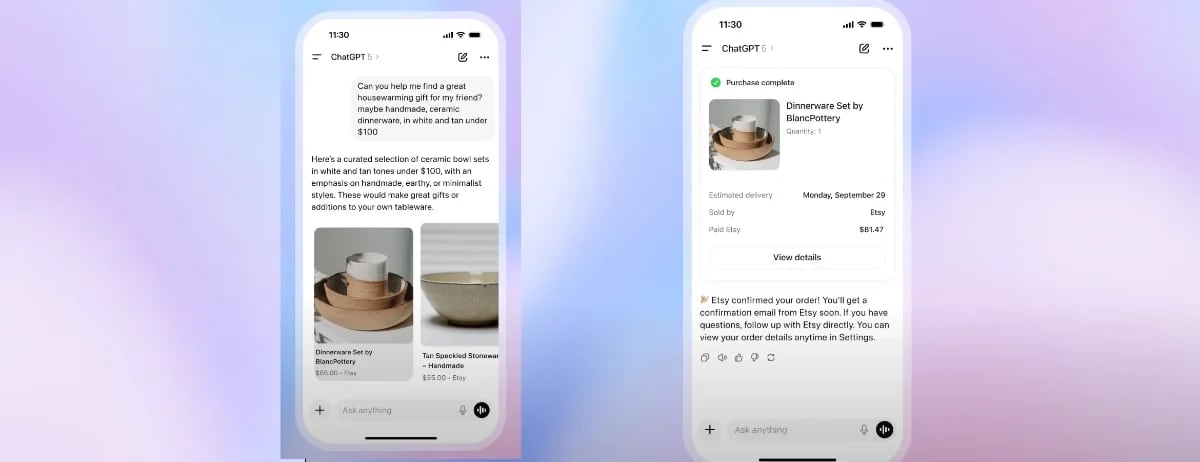 OpenAI lance Instant Checkout, une nouvelle fonctionnalité qui permet aux utilisateurs de ChatGPT d’acheter des produits depuis une conversation. Disponible pour les utilisateurs américains de ChatGPT Plus, Pro et Free, le service fonctionne aujourd’hui avec Etsy, et sera prochainement étendu aux marchands Shopify. La solution repose sur l’Agentic Commerce Protocol (ACP), un protocole ouvert co-développé avec Stripe, permettant aux marchands d’intégrer leurs produits et de gérer paiements et données clients sans modifier leurs systèmes existants.
